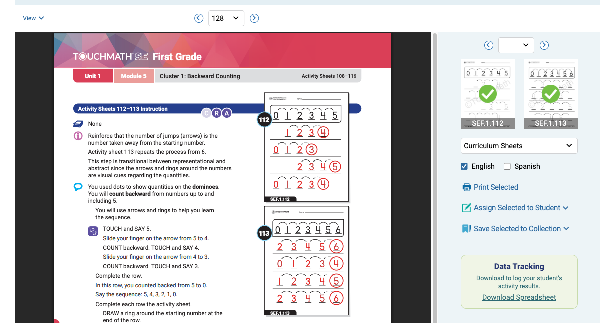 TouchMath includes the ability to print student activity sheets and the related Teacher's Guide pages. This article describes the process and two different options available.