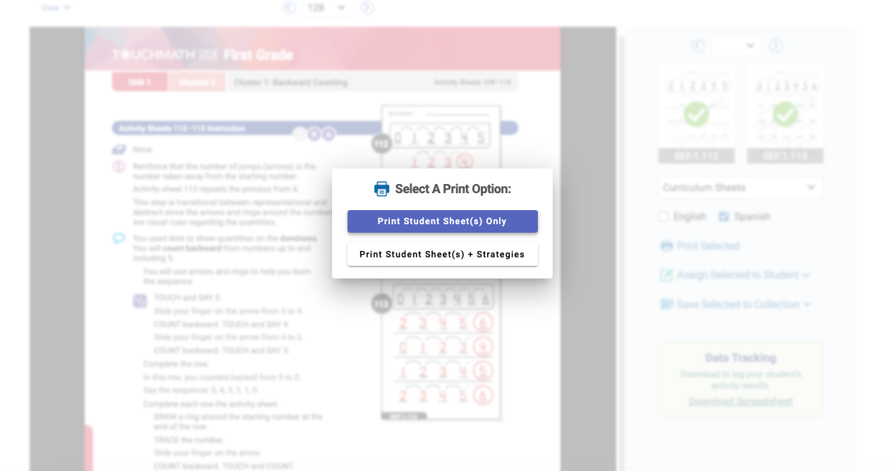 - Print Student Sheet(s) + Strategies: Creates two files and will print the Teacher's Guide page(s) and student materials.