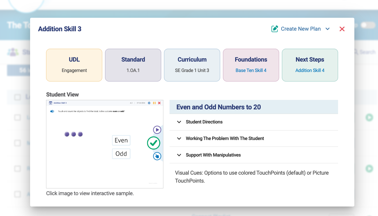 - Click "Create New Plan" to develop an assignment at the recommended level.
