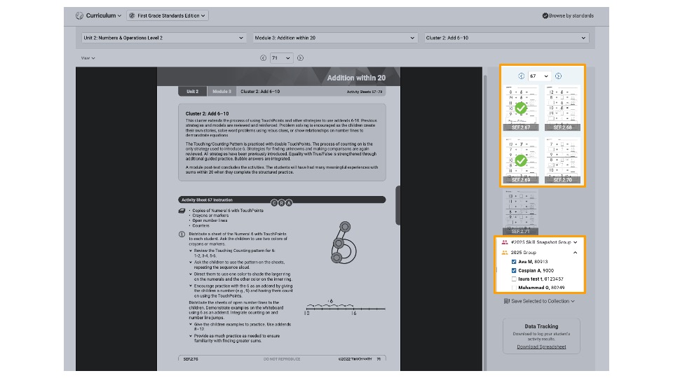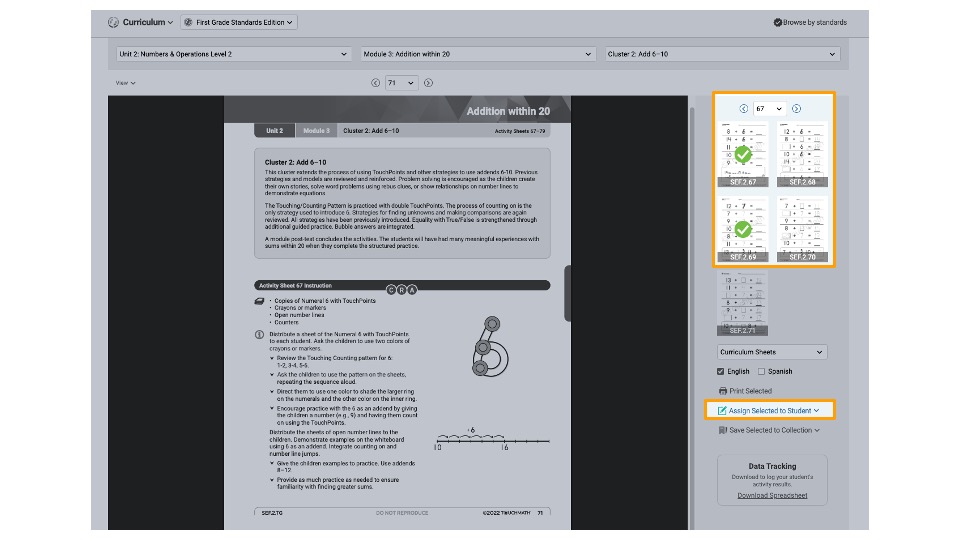 - Click on the Activity page images on the right side of the screen to add them to a new assignment