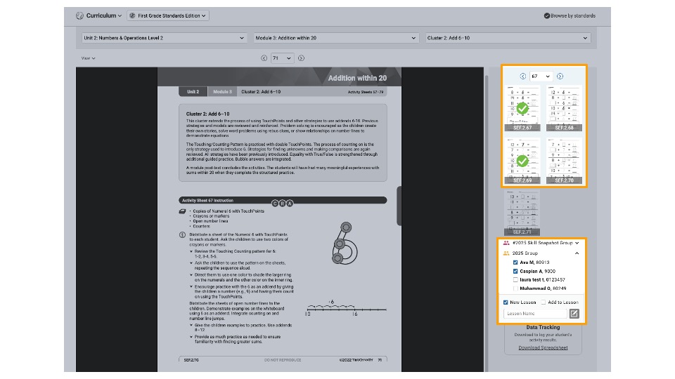 - Choose Add to Lesson to include the activity sheets in an already existing assignment